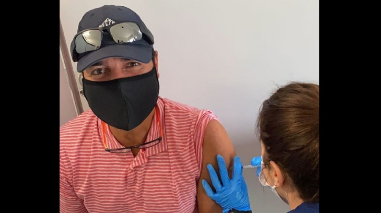 “Por mí, por mi familia y por ustedes”, escribió el puertorriqueño en la imagen en la que una enfermera le aplica la dosis.