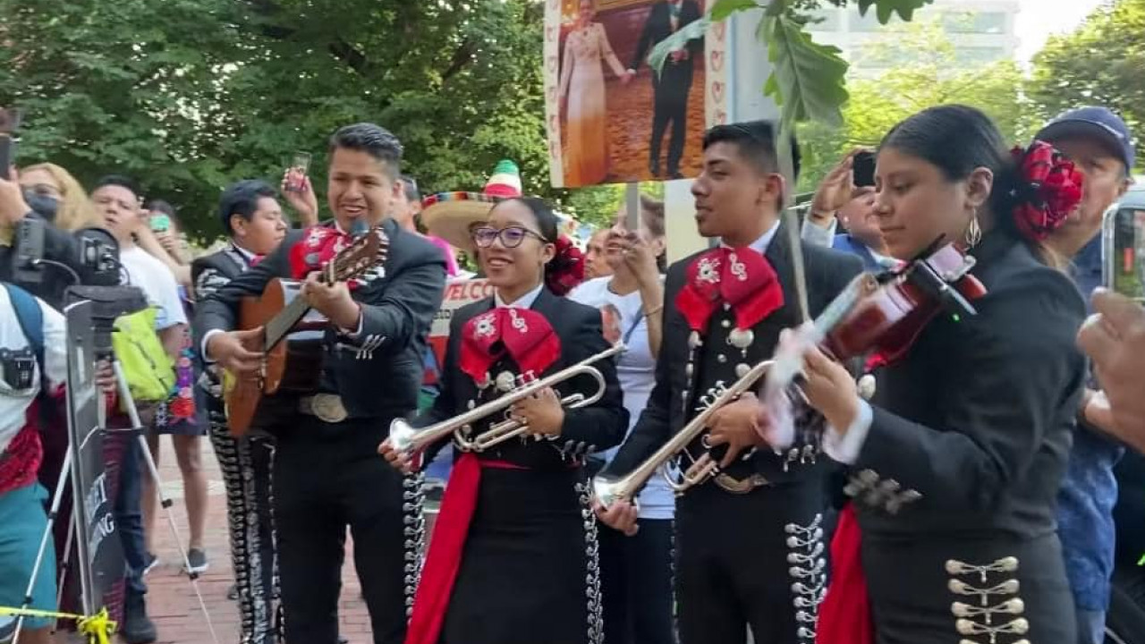 “Qué tal: amanecer con serenata de nuestros paisanos. ¡Gracias a nuestros paisanos radicados en Washington y a los que se han desplazado para estar aquí!, escribió.