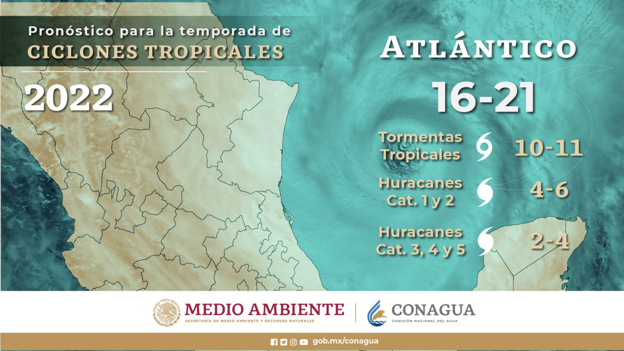 Las autoridades mexicanas informaron que prevén la formación de hasta 40 ciclones con nombre para 2022, lo que calificaron como una "temporada activa", y pronosticaron que del total de ciclones tropicales generados, tanto en el Atlántico como en el Pacífico, al menos cinco impacten al país.