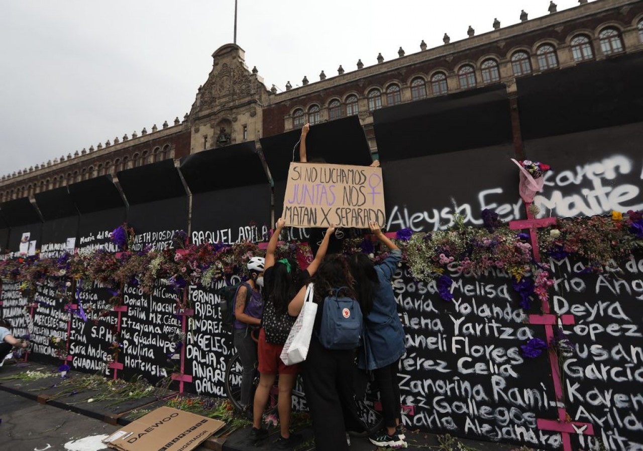 Ante la imposibilidad de acercarse a Palacio Nacional por las vallas colocadas para proteger el recinto de posible vandalismo por la marcha del Día Internacional de la Mujer este lunes, colectivos feministas convirtieron la barrera en un memorial con nombres de víctimas de feminicidio.